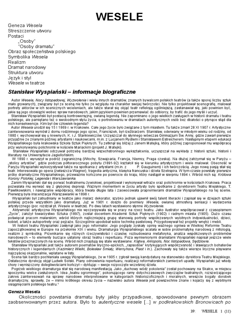 Dlaczego Wesele Stanislawa Wyspianskiego Uwazane Jest Za Dramat Narodowy Pdf Free Download